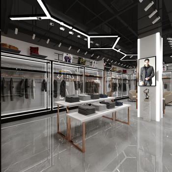 Özel High End Modern erkek giyim mağazası vitrin rafı standı sayaç masa raf giyim mağazaları için bir durak çözüm
